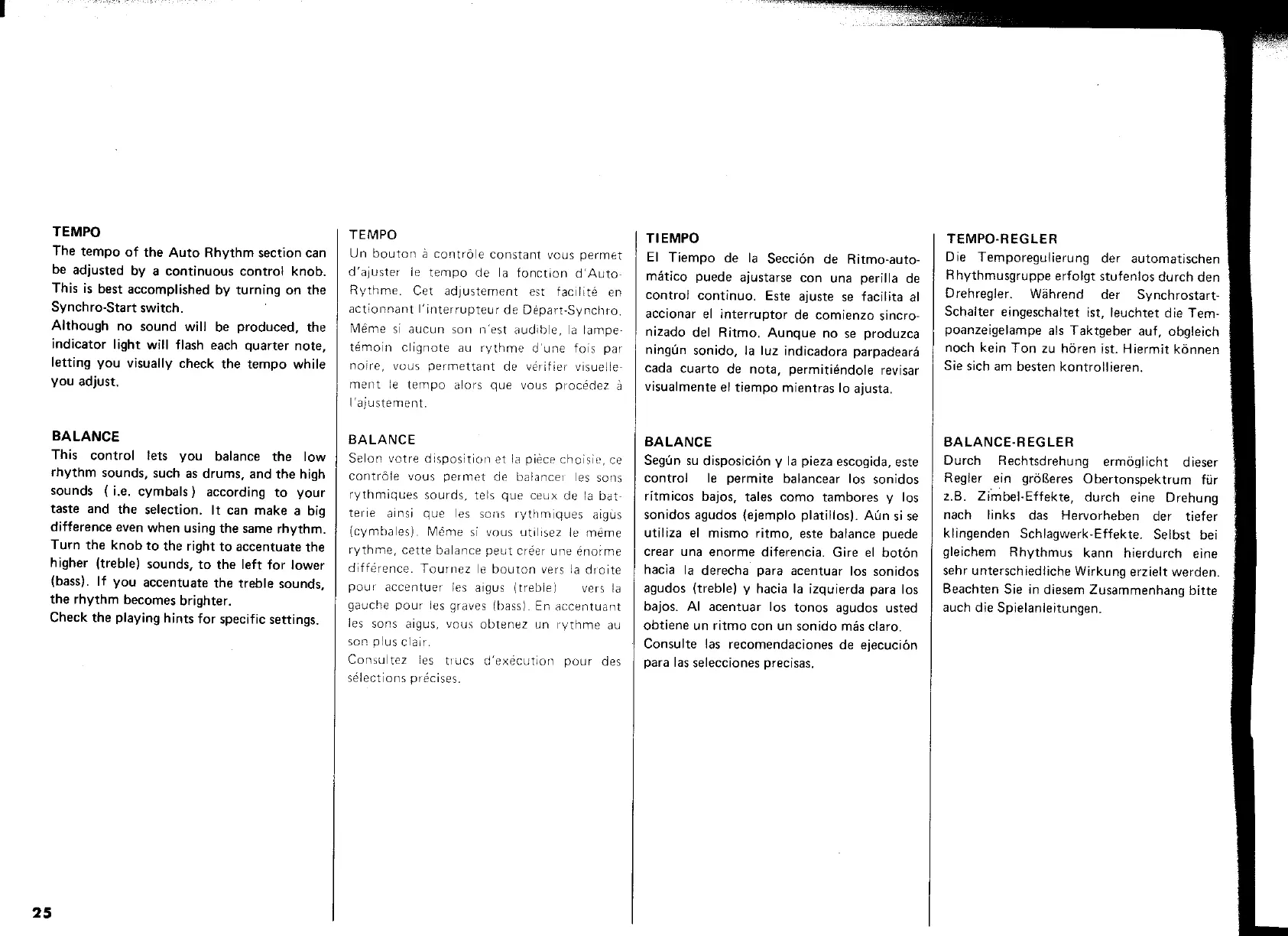 Yamaha Electone E-50 - Tempo, Balance, and Rhythm Controls
