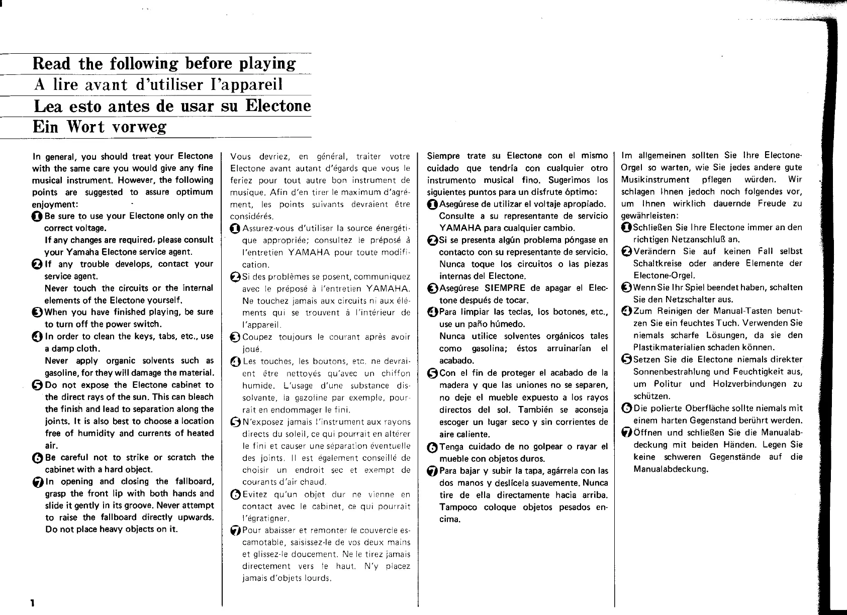 Yamaha Electone E-50 - Before Playing: Essential Instructions