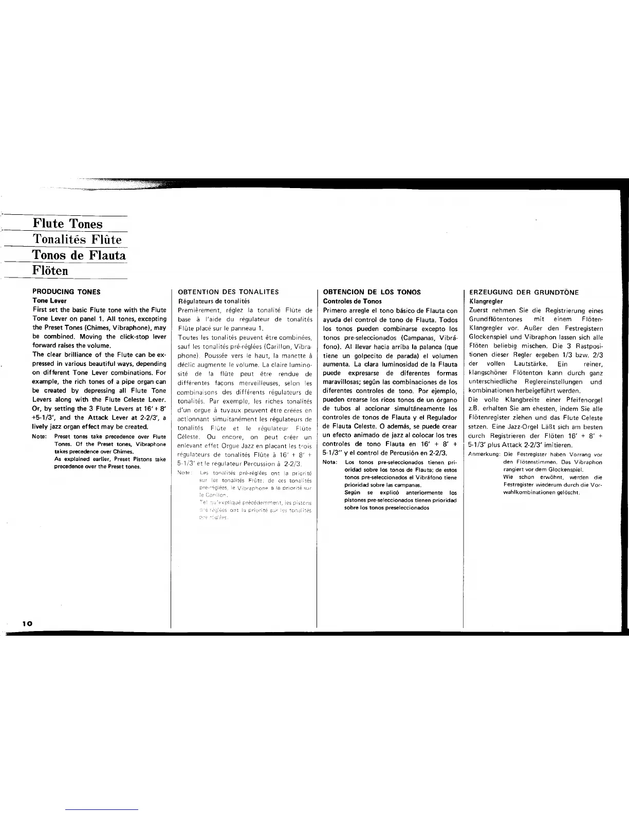 Yamaha Electone E-70 - Flute Tone Guide