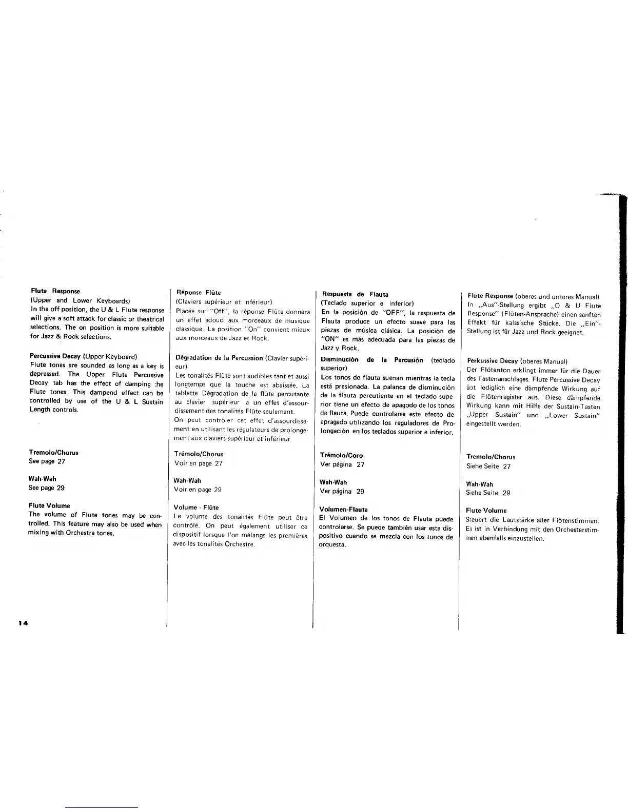 Yamaha Electone E-70 - Flute Response; Percussion Decay (Upper Keyboard); Flute Volume