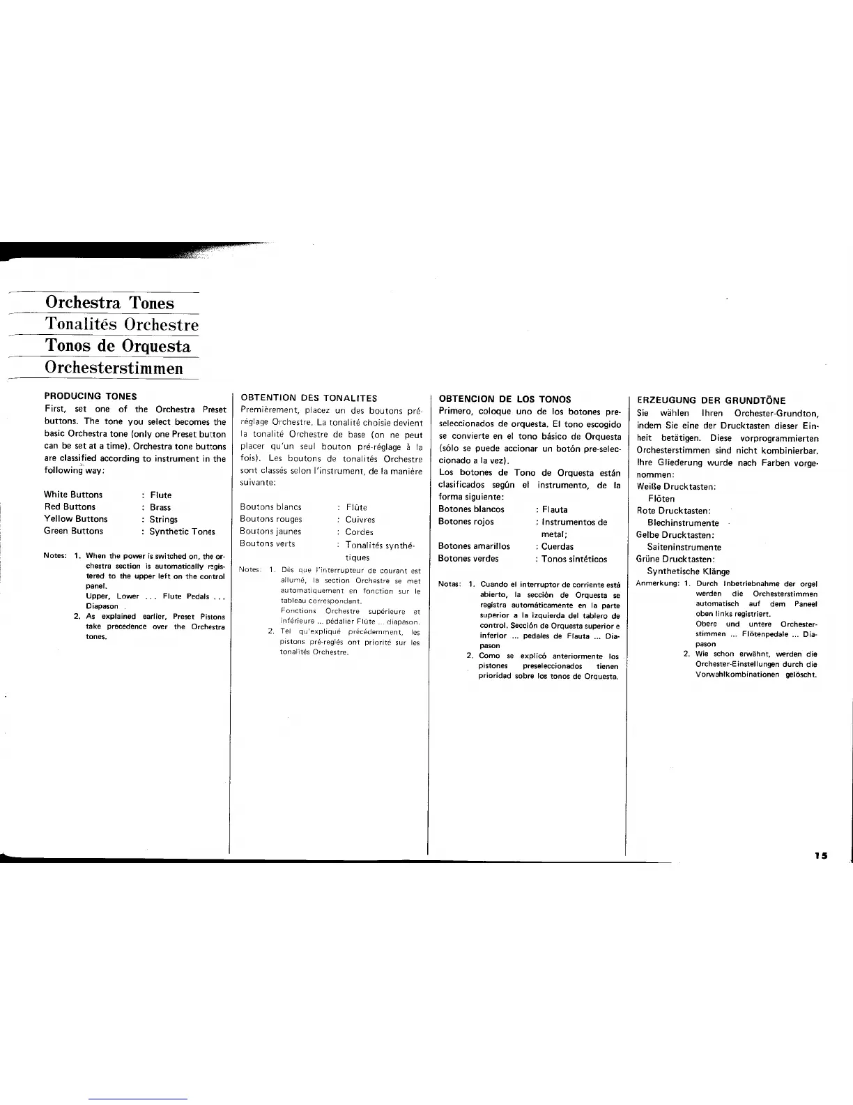 Yamaha Electone E-70 - Orchestra Tone Guide