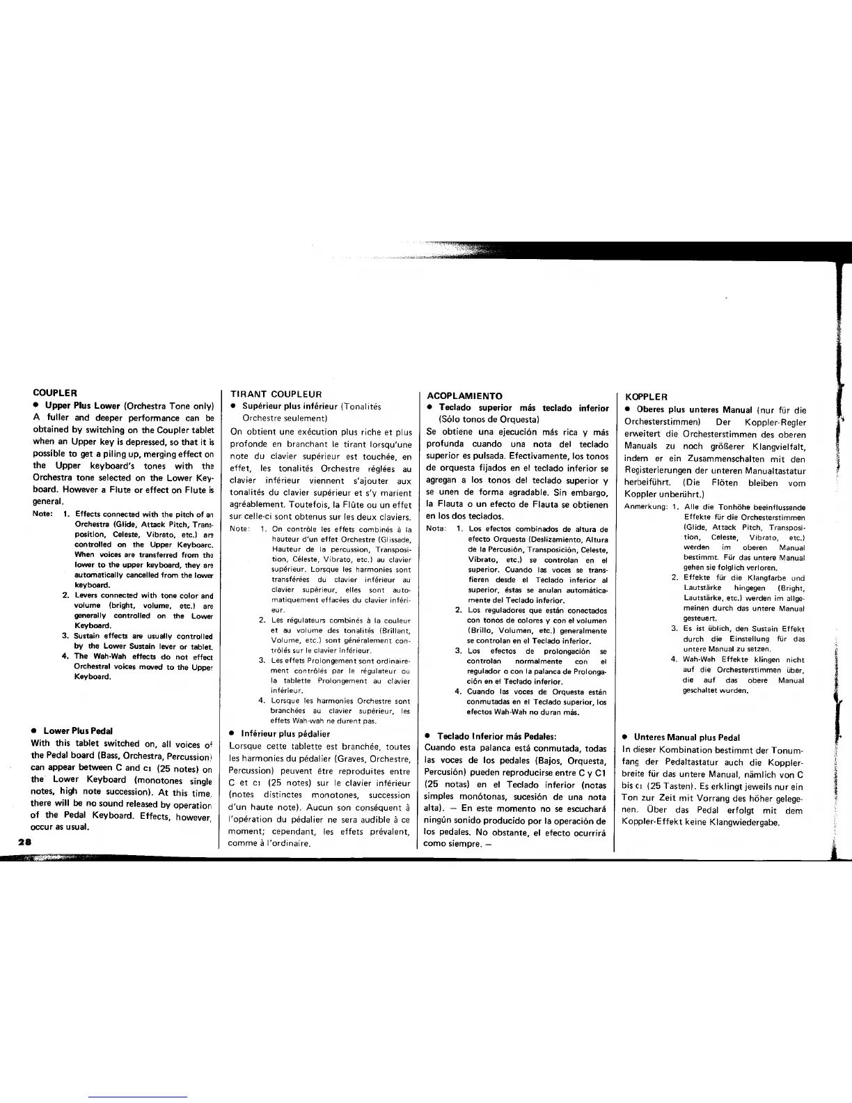 Yamaha Electone E-70 - Coupler