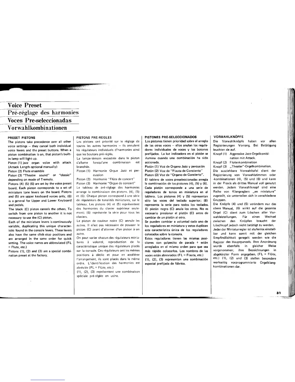 Yamaha Electone E-70 - Voice Preset and Piston System