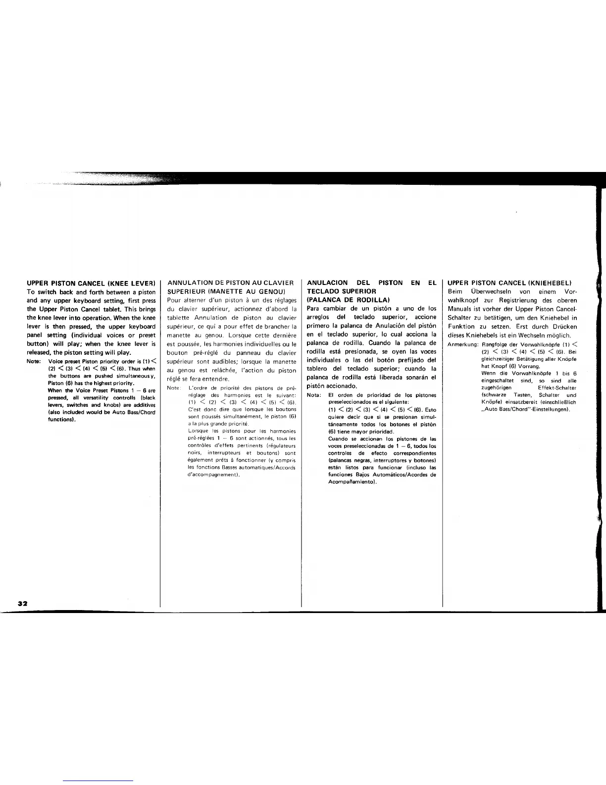 Yamaha Electone E-70 - Upper Piston Cancel (Knee Level)