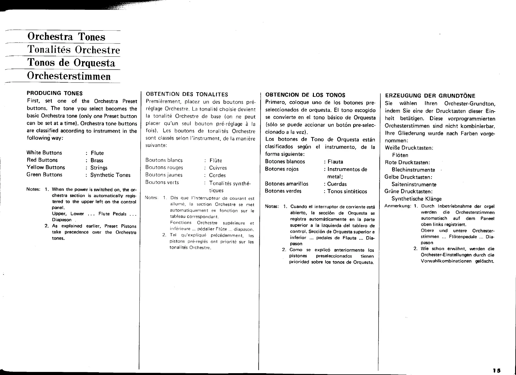 Yamaha Electone E-70 - Orchestra Tone Guide