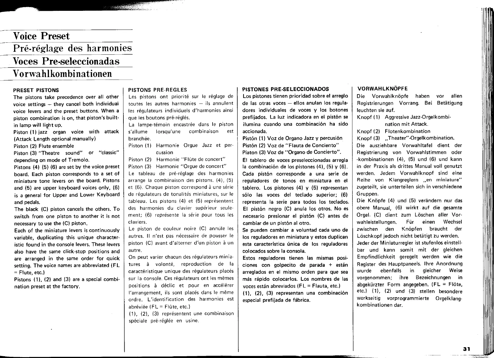 Yamaha Electone E-70 - Voice Preset and Piston System
