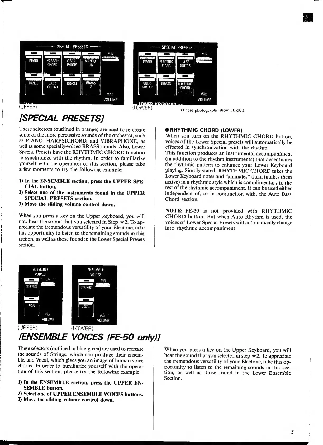 Yamaha Electone FE-40 - Special Presets; Ensemble Voices