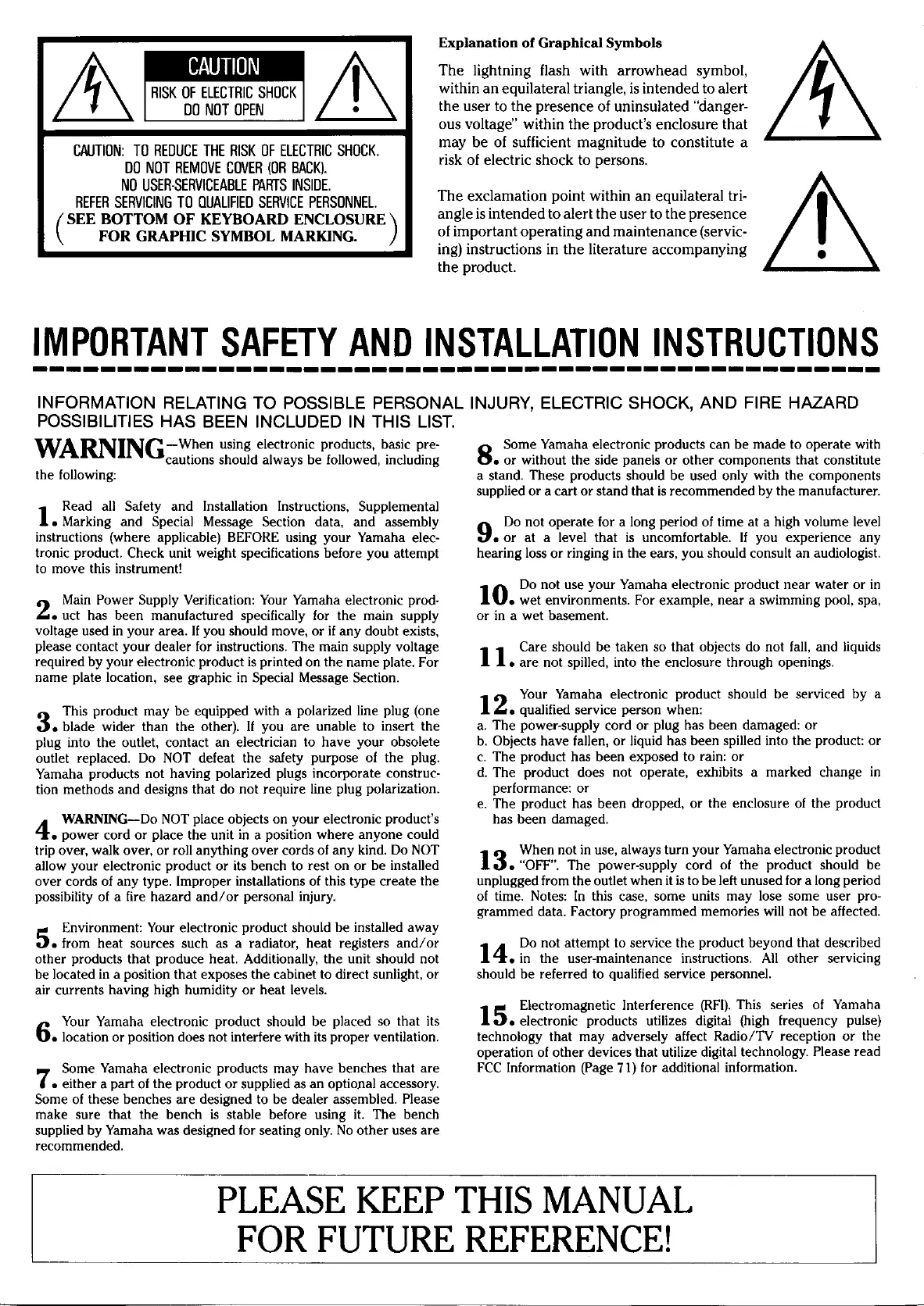 Yamaha Electone HS-4 - Important Safety and Installation Instructions; Explanation of Graphical Symbols