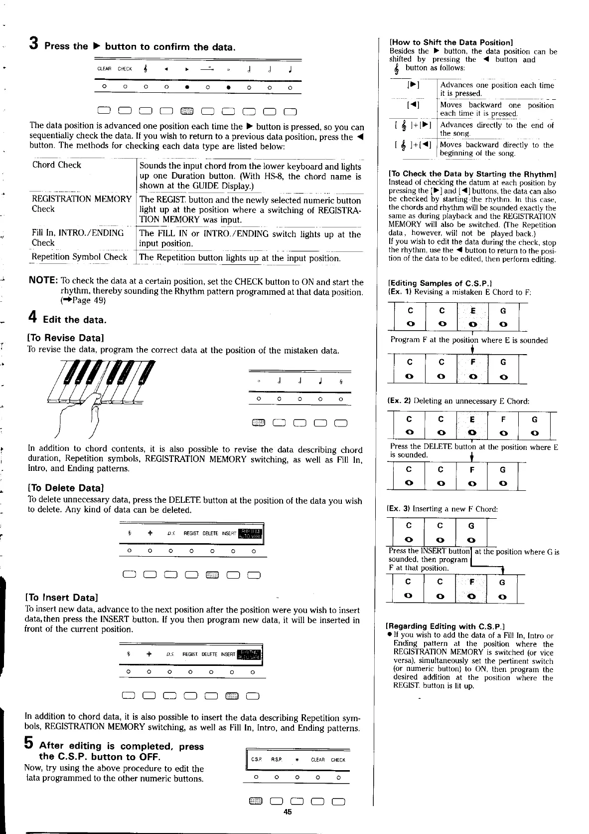 Yamaha Electone HS-4 - How to Shift the Data Position; Editing Samples of C.S.P.; Regarding Editing with C.S.P.