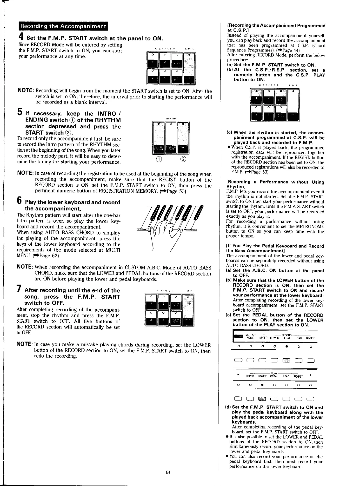 Yamaha Electone HS-4 - Recording the Accompaniment; Recording the Accompaniment Programmed at C.S.P.; If You Play the Pedal Keyboard and Record the Bass Accompaniment