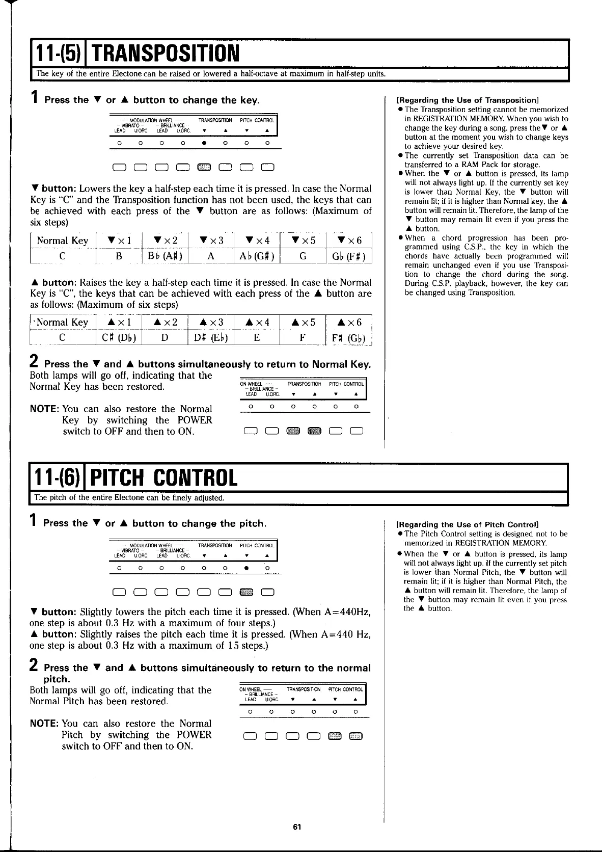 Yamaha Electone HS-4 - Transposition; Pitch Control; Regarding the Use of Transposition; Regarding the Use of Pitch Control