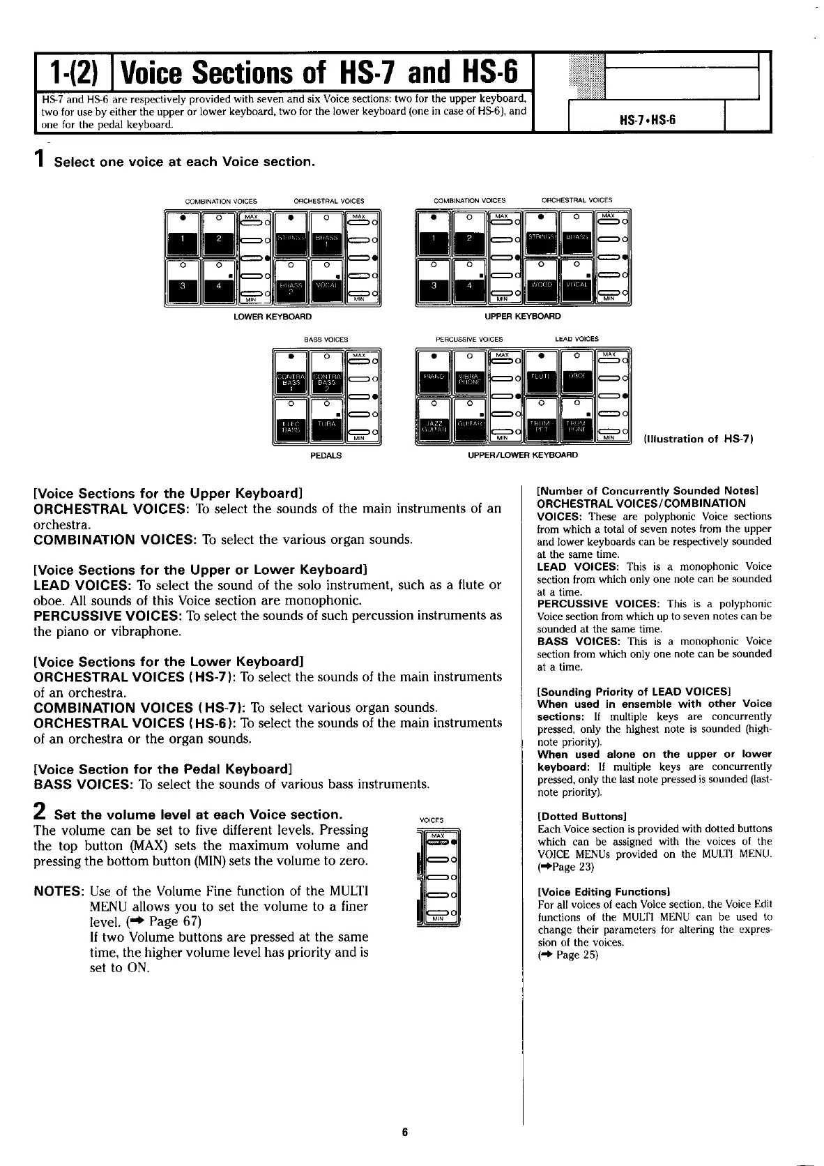 Yamaha Electone HS-4 - Voice Sections of HS-7 and HS-6; Sounding Priority of LEAD VOICES; Voice Editing Functions
