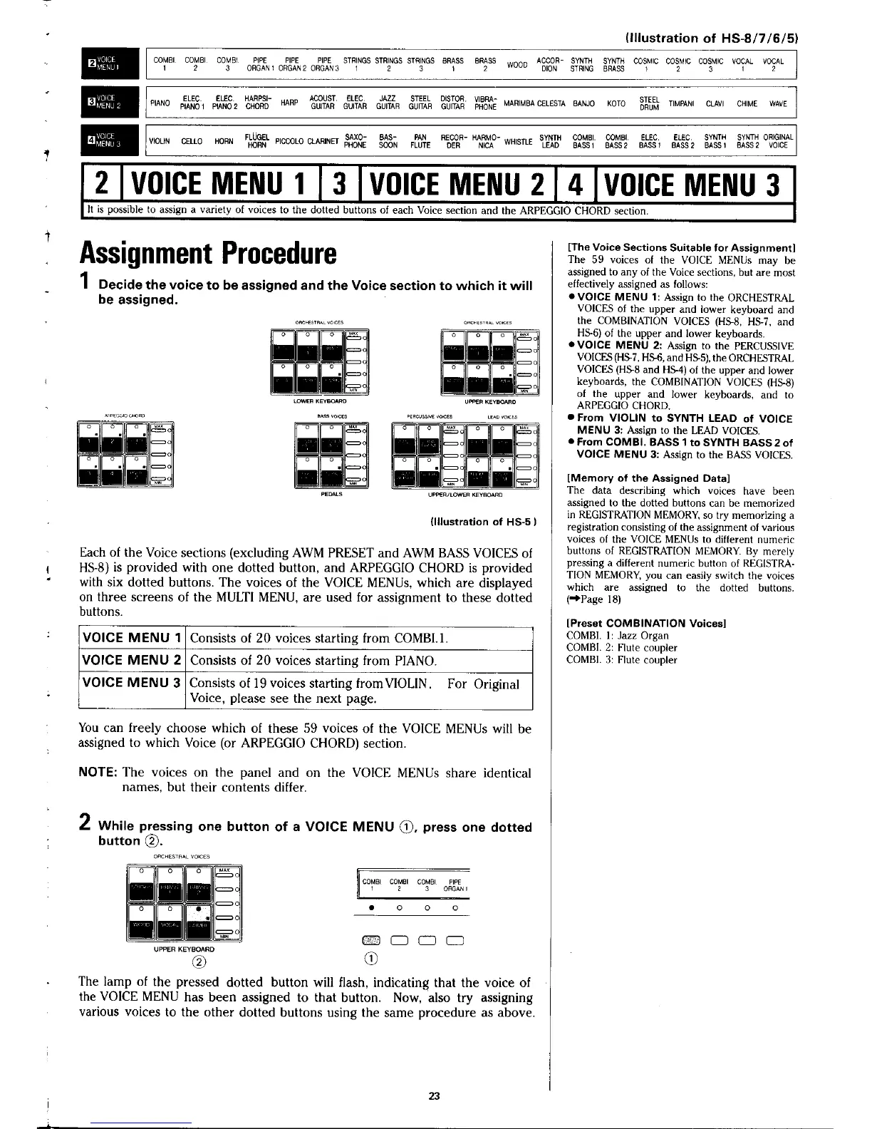 Yamaha Electone HS - VOICE MENUS