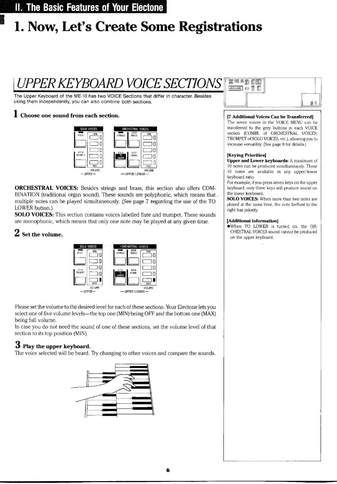 Yamaha Electone ME-10 - Electone ME-10 Basic Features; Creating Sound Registrations