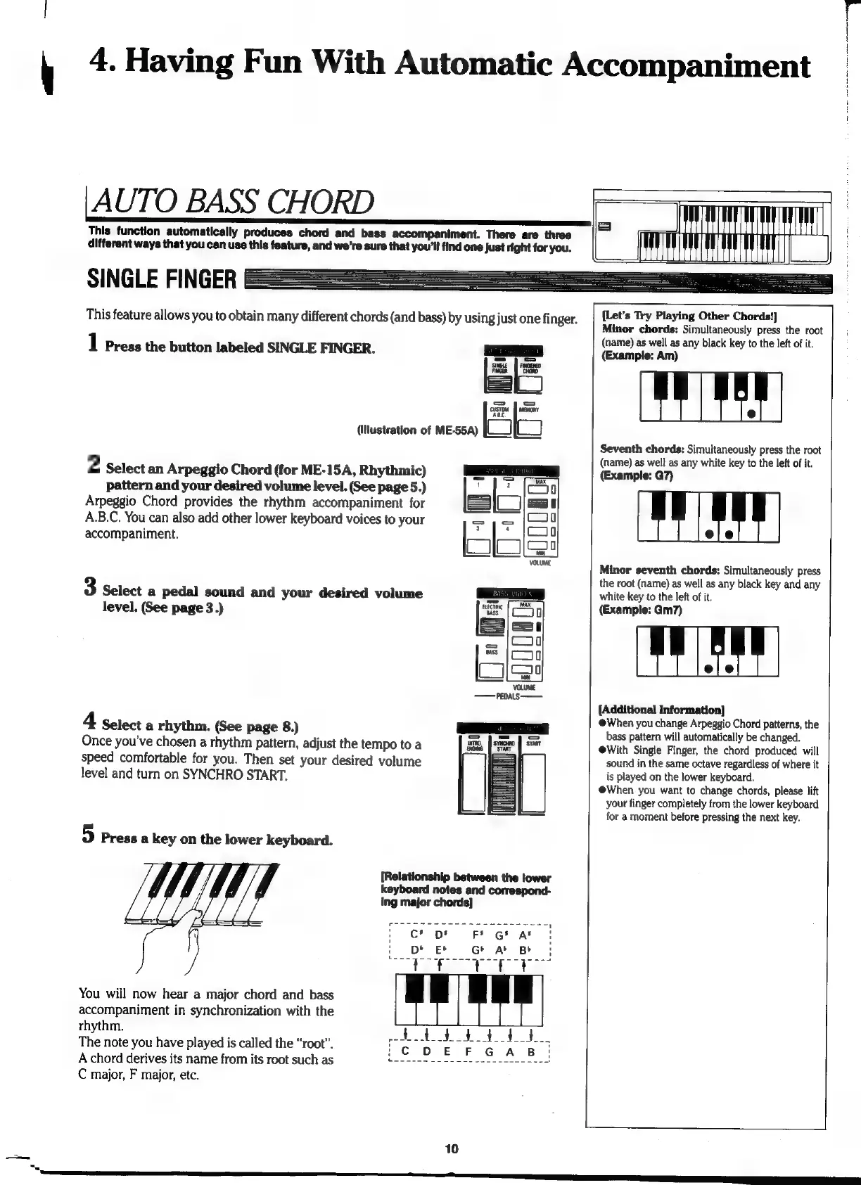Yamaha Electone ME-35A - Automatic Accompaniment Features; Auto Bass Chord; Single Finger Chord Input