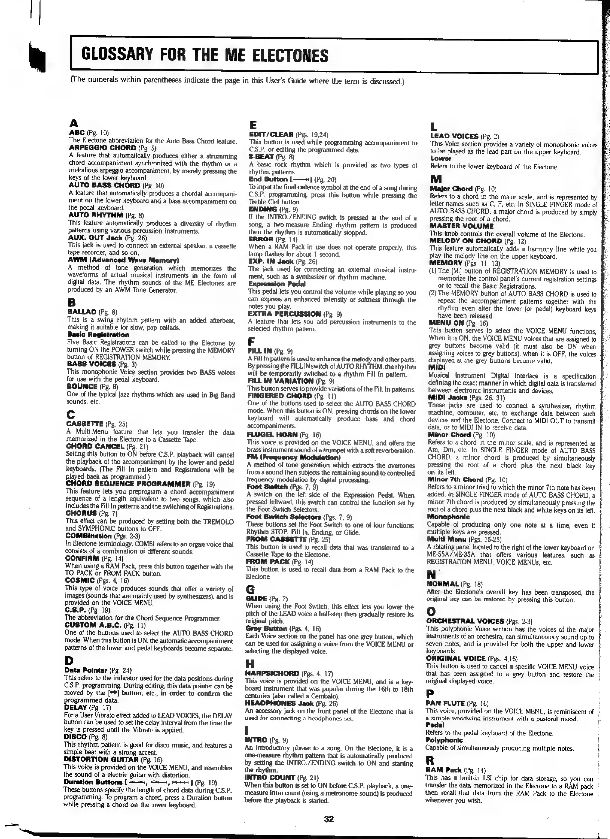 Yamaha Electone ME-35A - Glossary of Electone Terms; Glossary Terms A-D