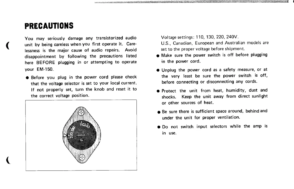 Yamaha EM-150 - Precautions