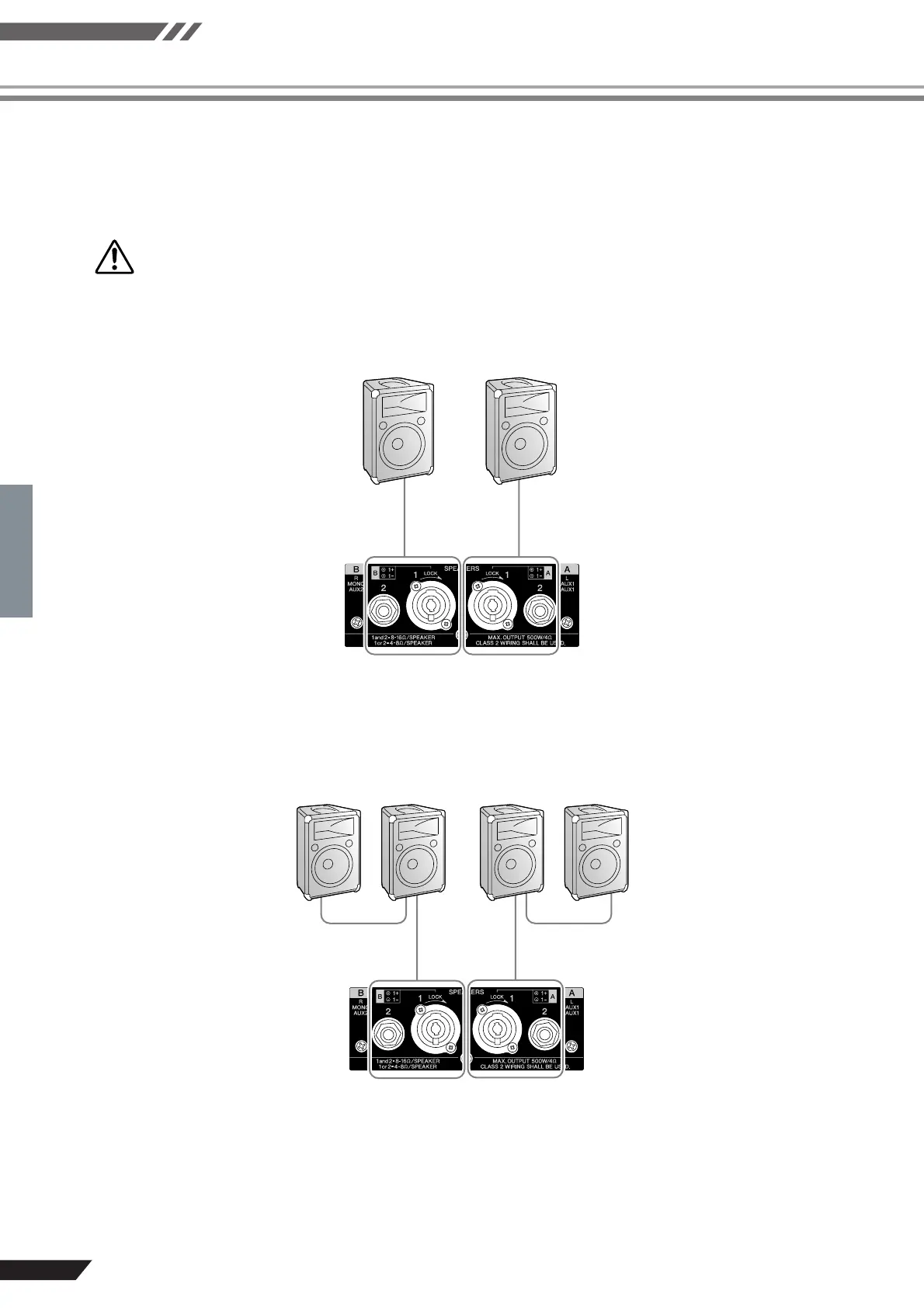 When connecting speakers in parallel as shown below, use speakers with impedance of 8 ohms to 16 ohms.