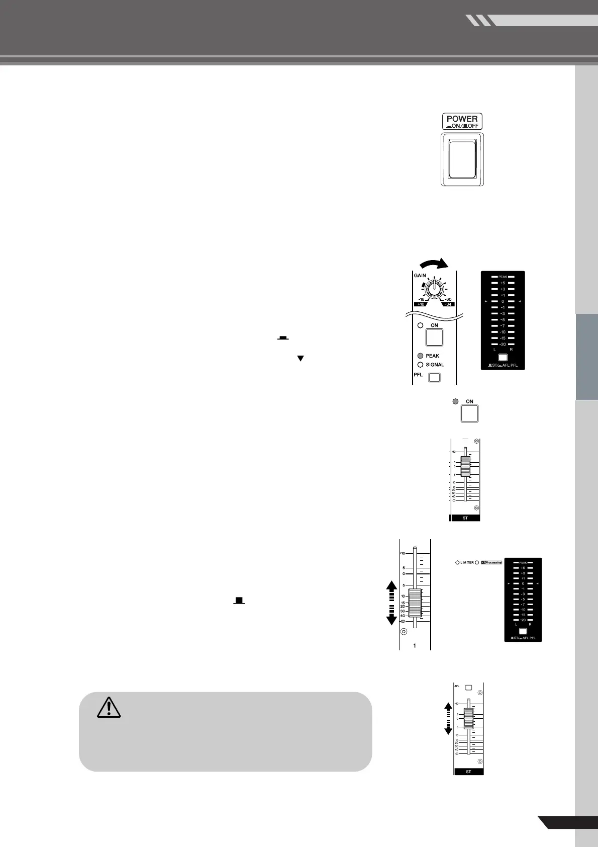 level: Set the ST/AFL-PFL switch to AFL-PFL( ) and turn on the PFL
