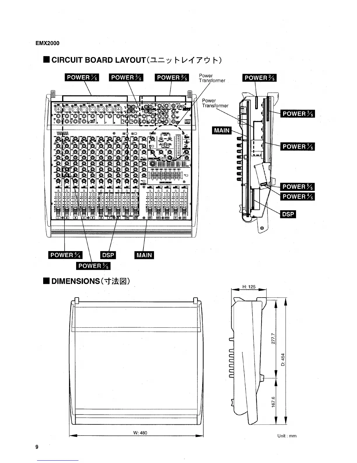 Yamaha EMX2000 - Circuit Board Layout; Dimensions