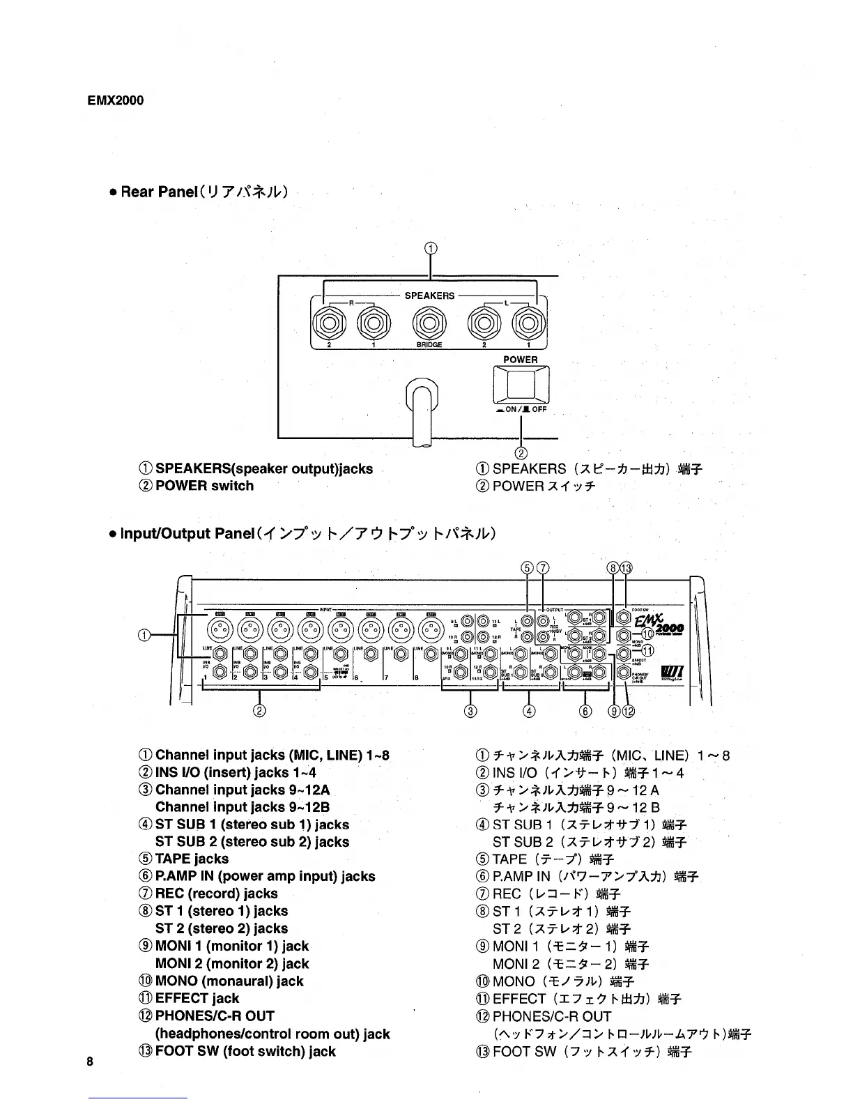Yamaha EMX2000 - Rear Panel; Input;Output Panel