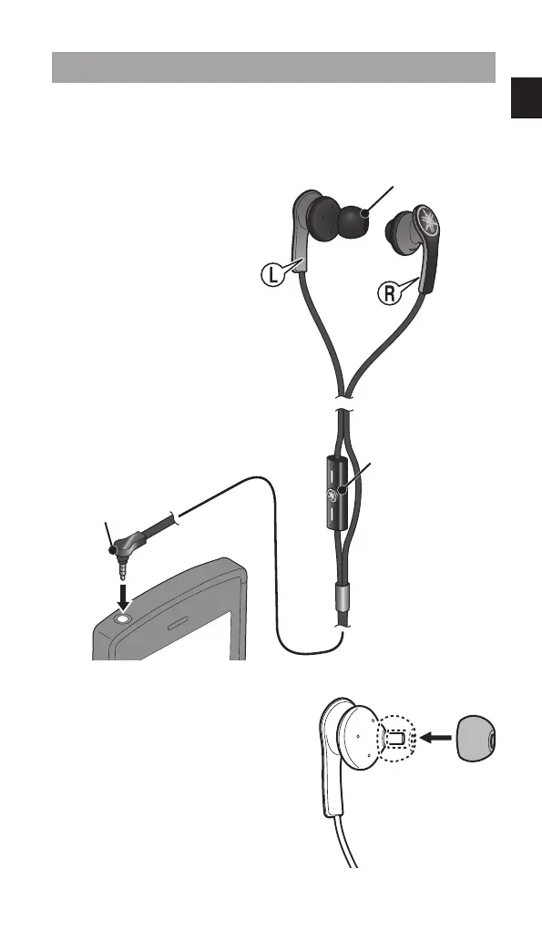 Wear the earphones with the L mark in your left ear, and the one with the R mark