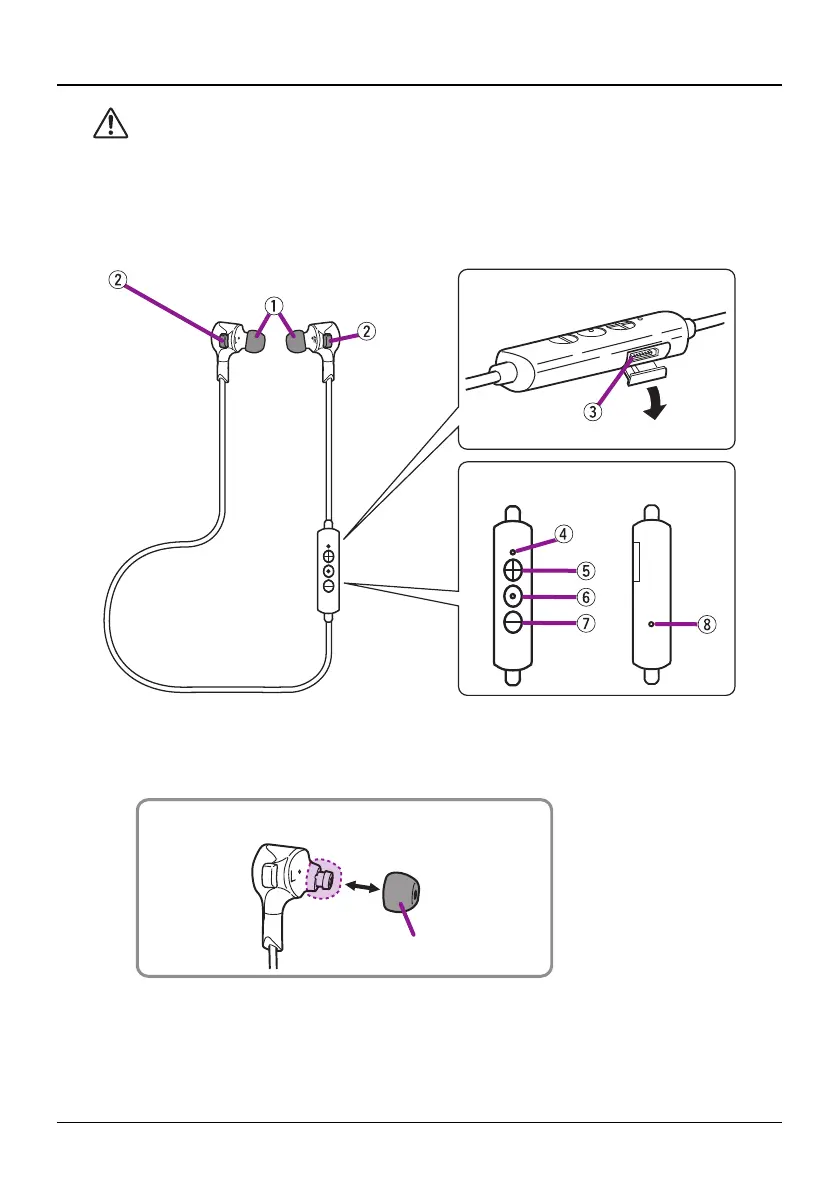 • Non utilizzare gli auricolari senza gommini o con gommini/stabilizzatori danneggiati.