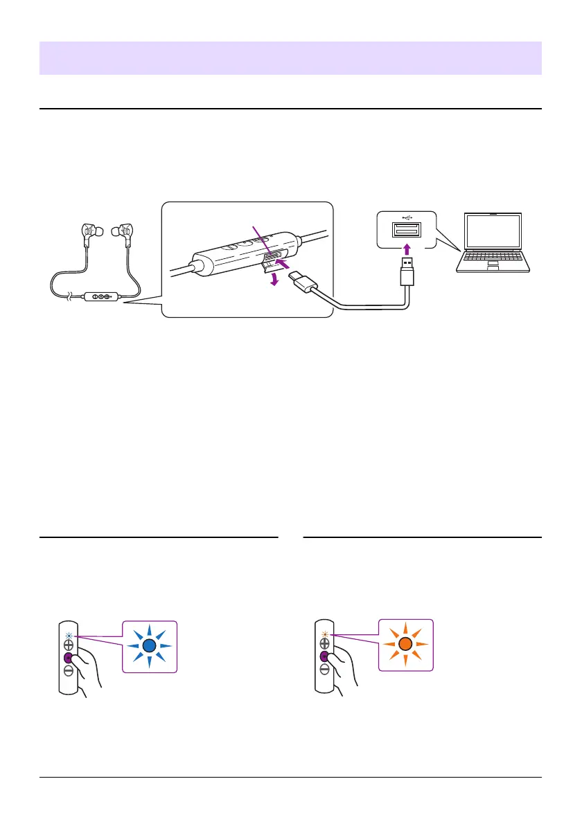• Não use os fones de ouvido ao conectar o cabo de alimentação USB.