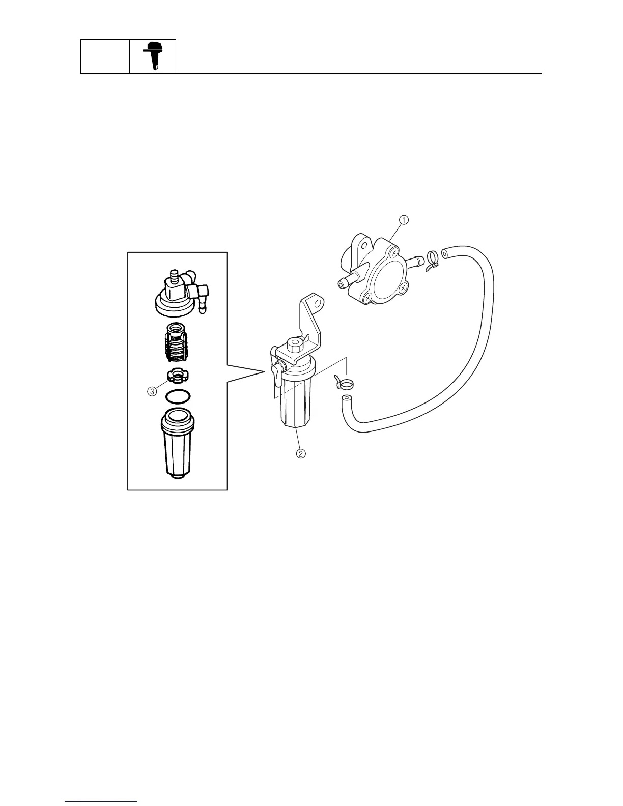 A water separation fuel filter has been adopted. When water is mixed with fuel, it is separated and