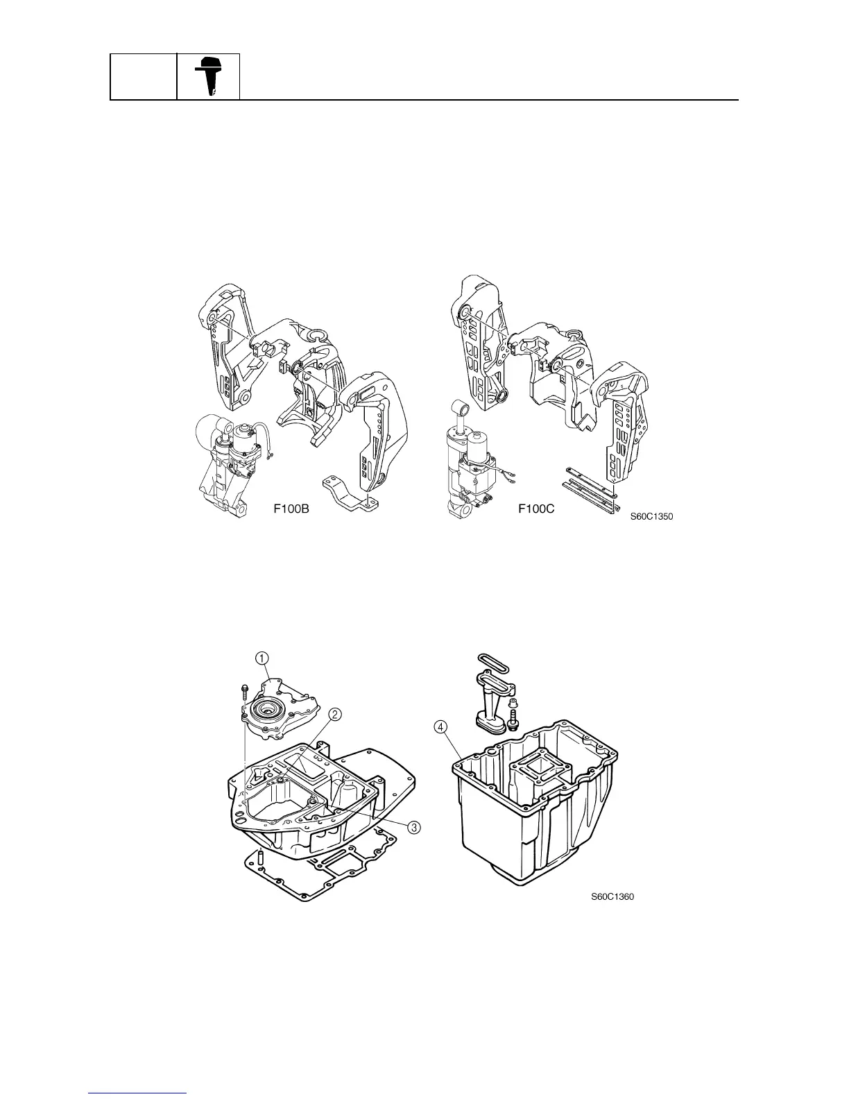 F100B uses the bracket unit of 2-stroke, V4 outboard motor and F100C uses that of F100A.