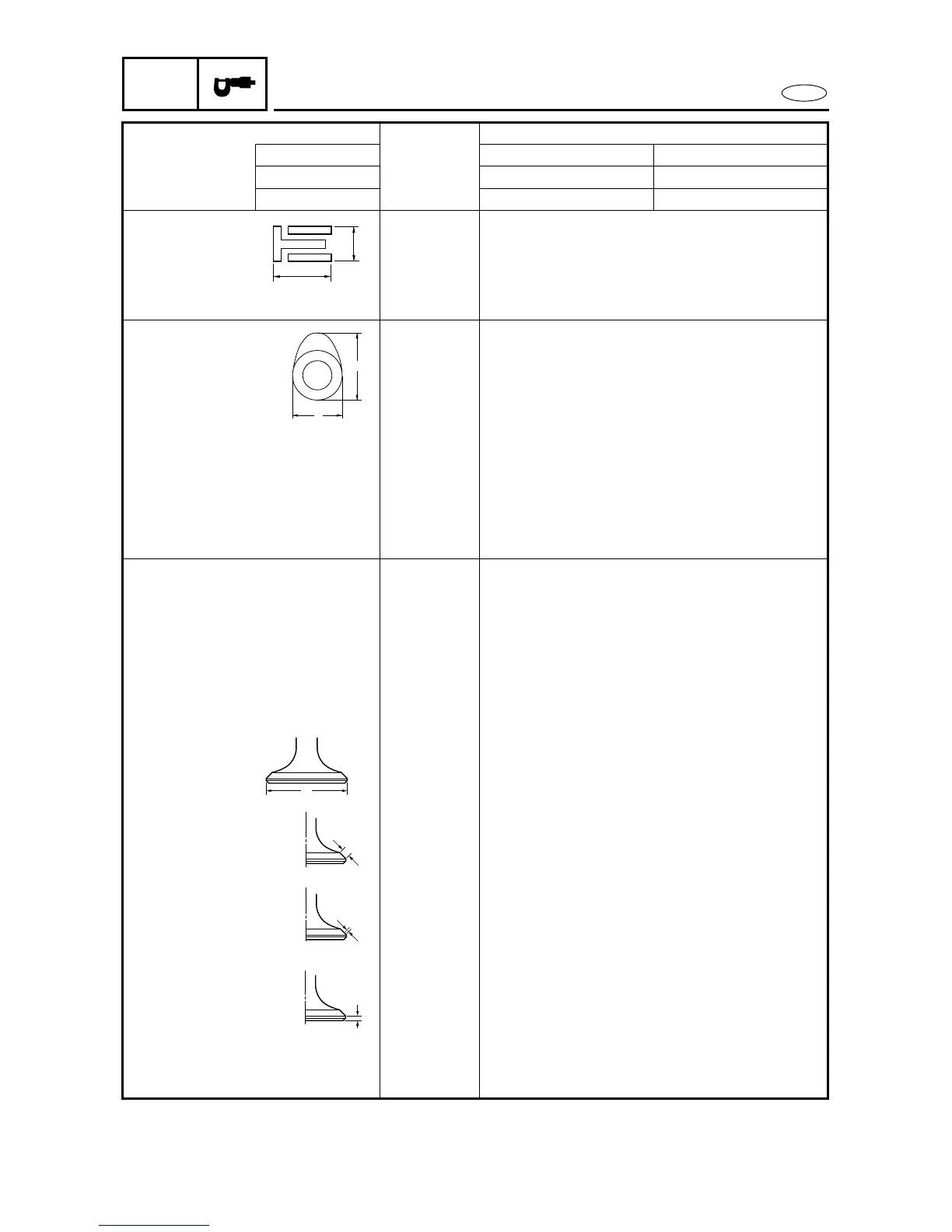 Side clearance mm (in) 0.03 - 0.15 (0.001 - 0.006)