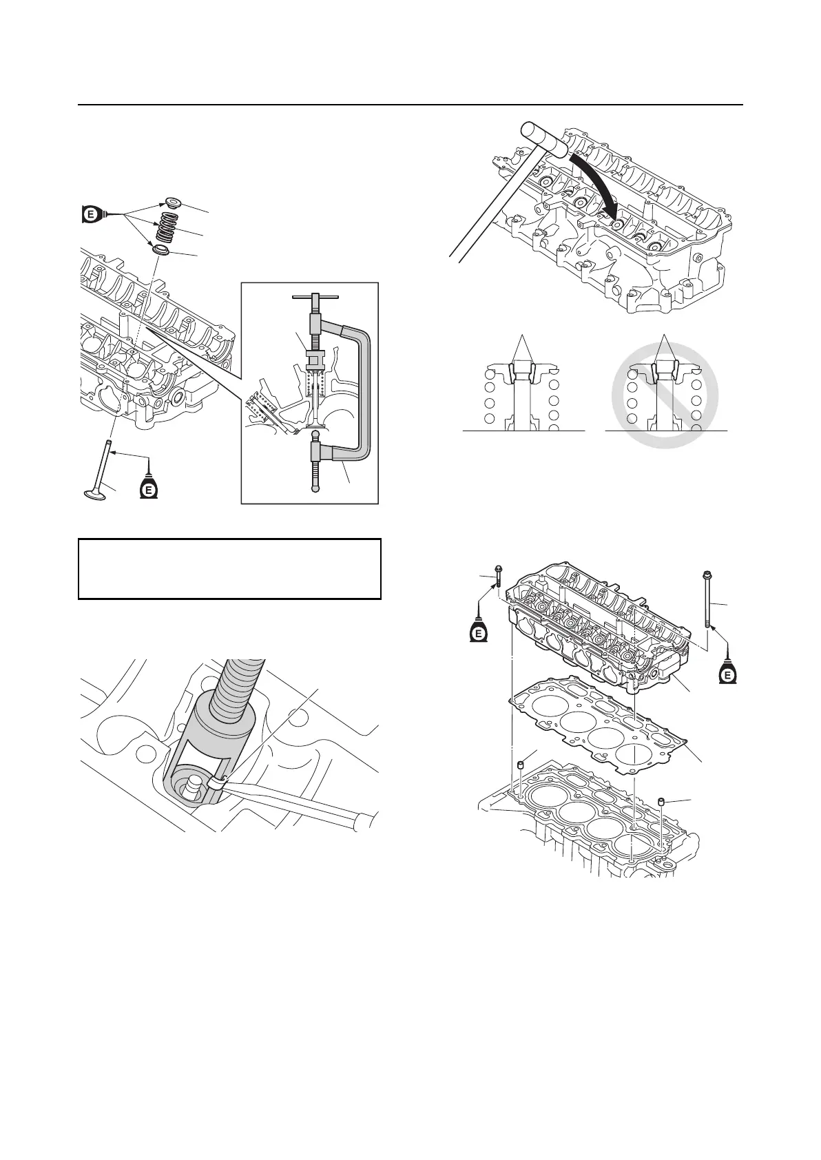 2. Install the valve “1”, valve spring seat “2”,
