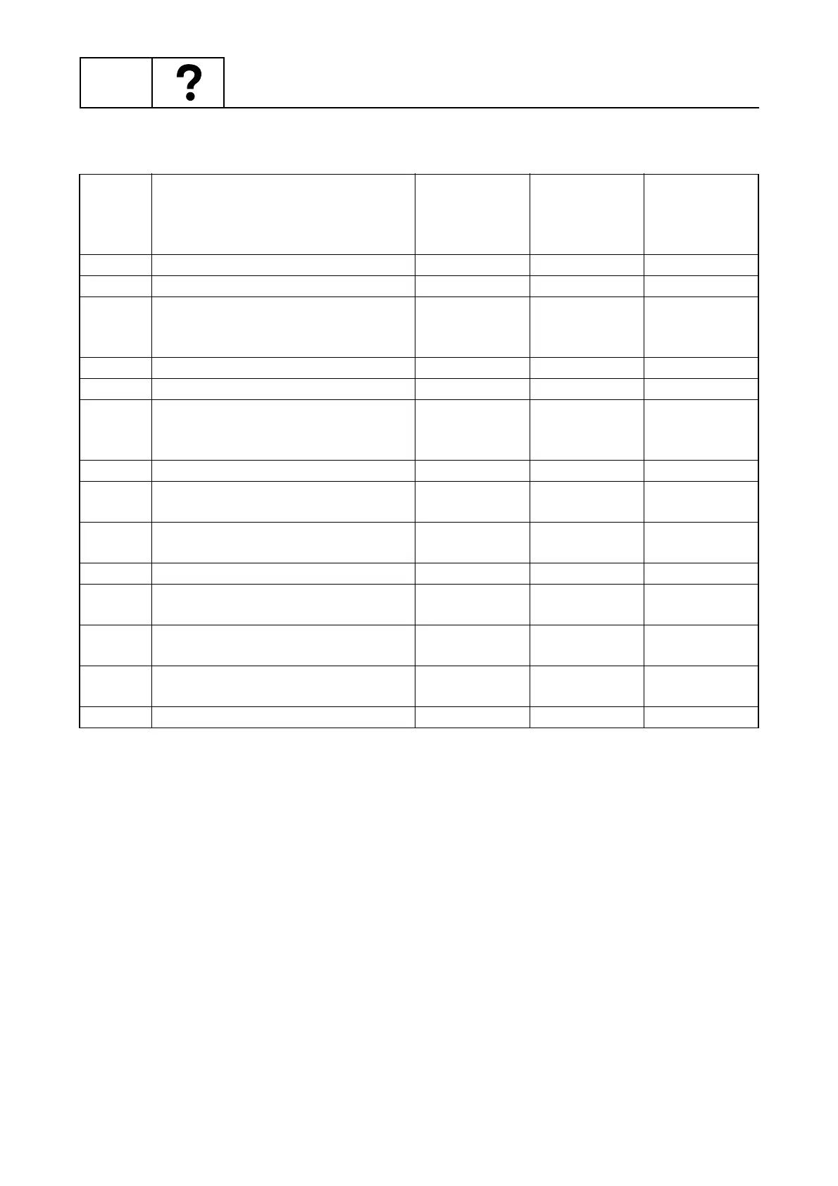 Trouble code table