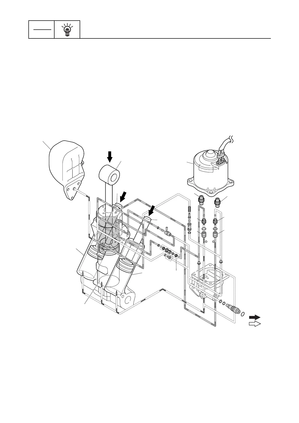 When the PTT switch is pressed to “DN,” the power trim and tilt motor operates the gear pump and