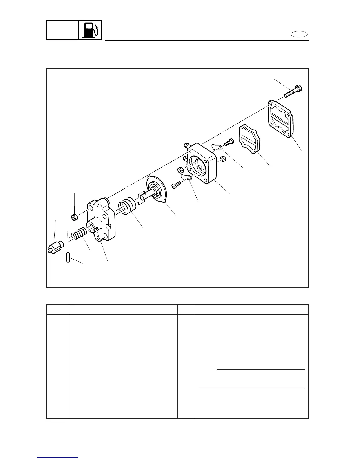 Yamaha F15A - Fuel Pump Exploded Diagram; Fuel Pump Removal and Installation Chart