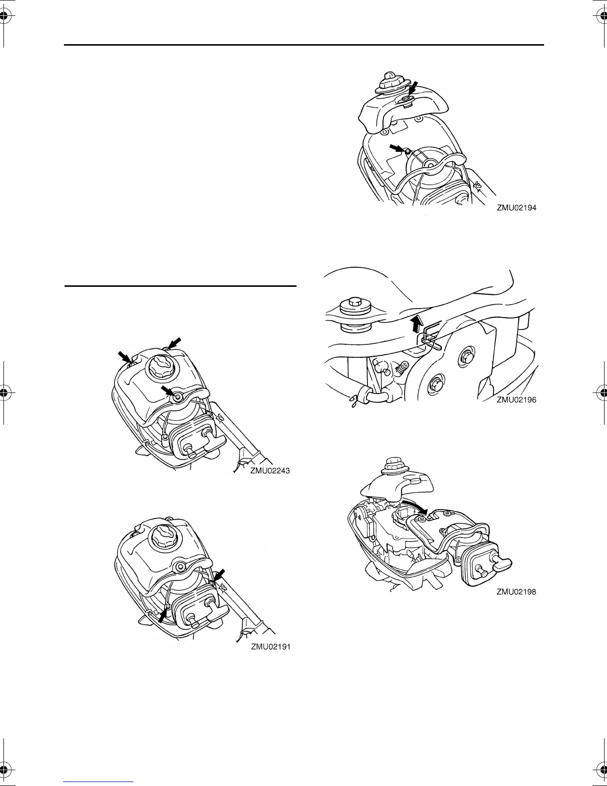 2. Remove the bolts from the fuel tank.