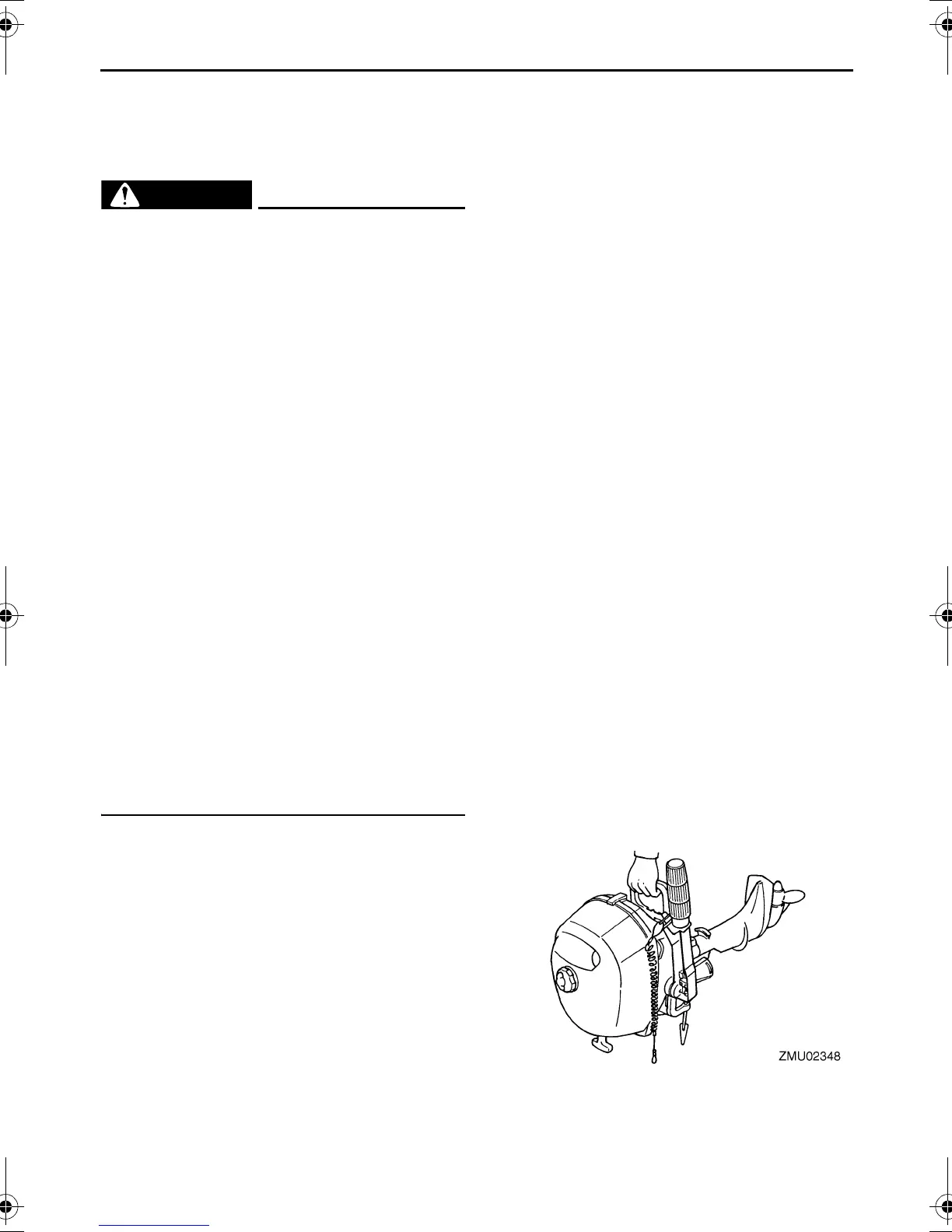 ● Never get under the outboard motor