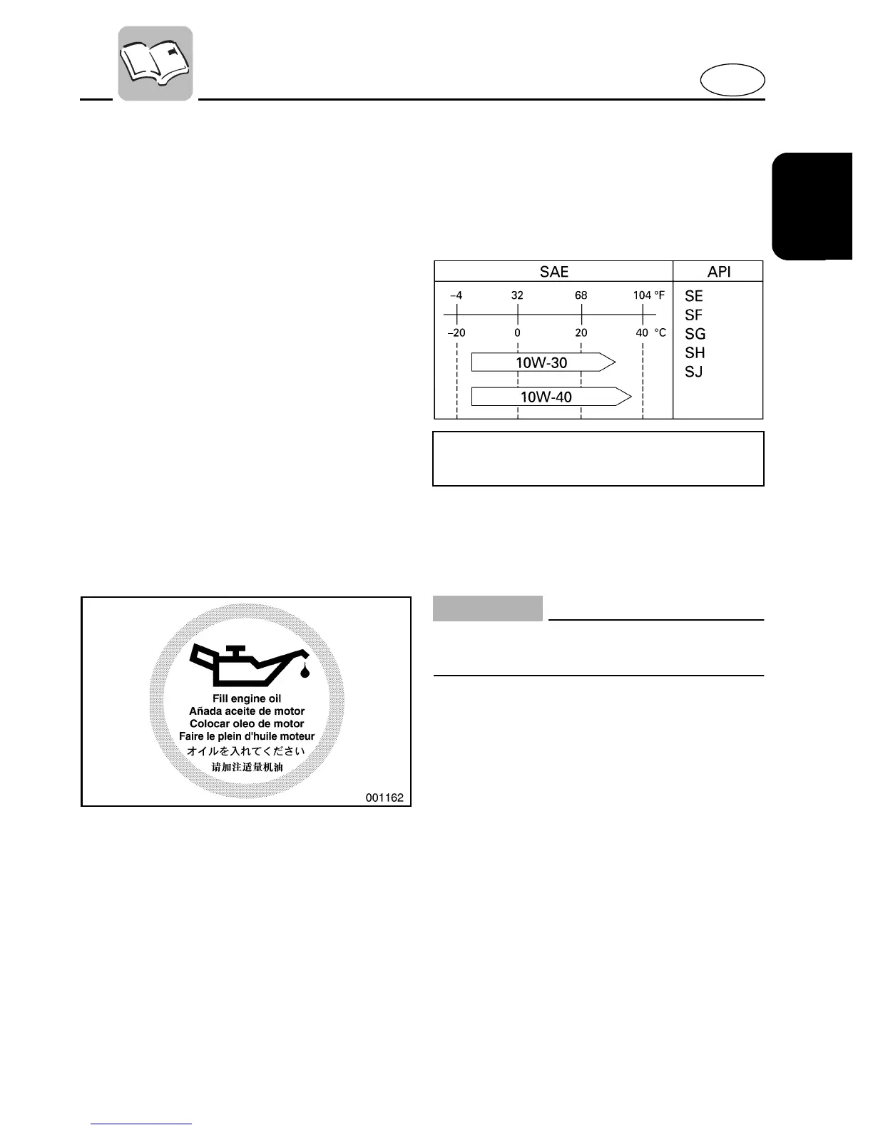 Recommended engine oil;