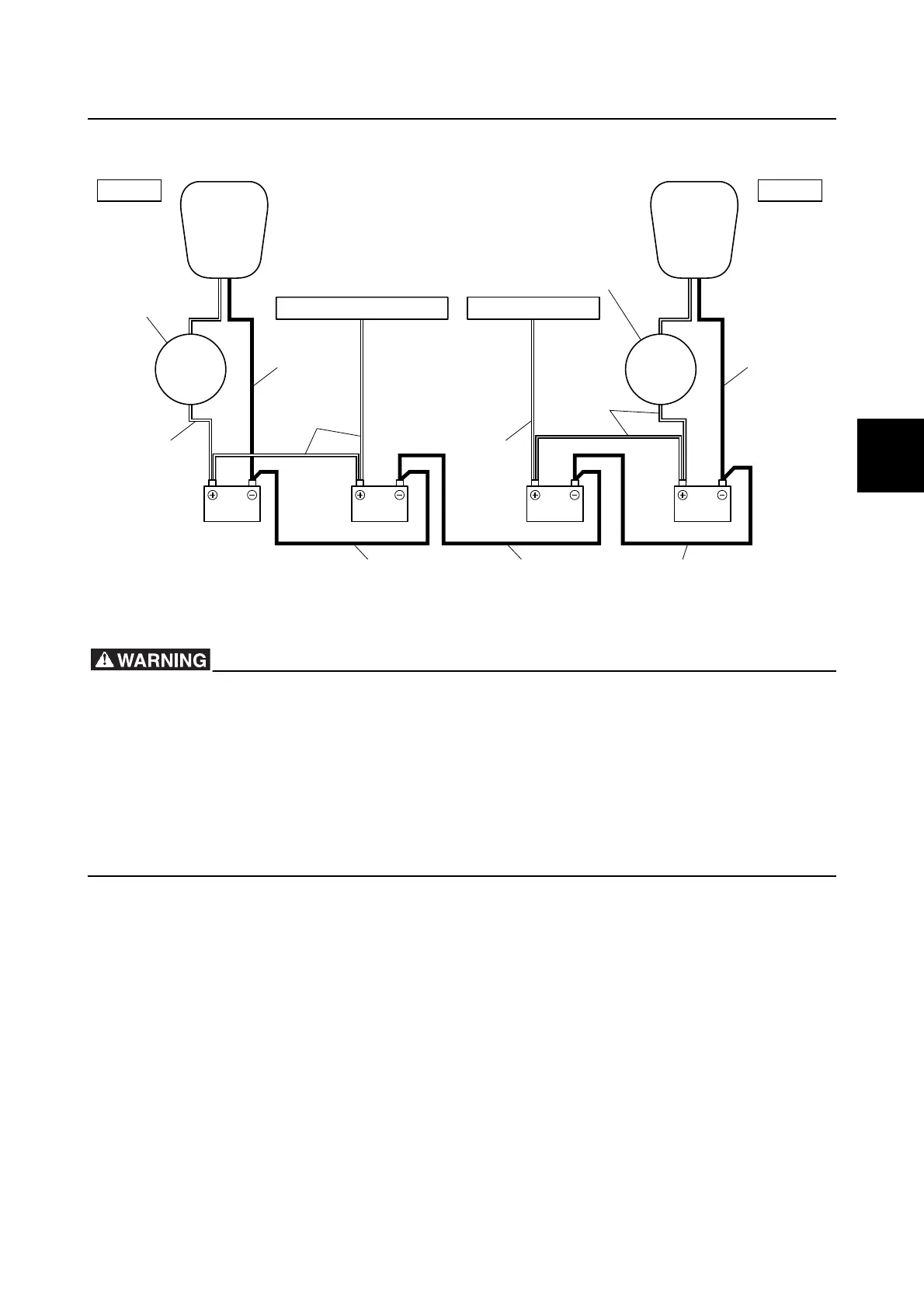 • When only one battery is used for one engine, connect the positive battery cable and isola-