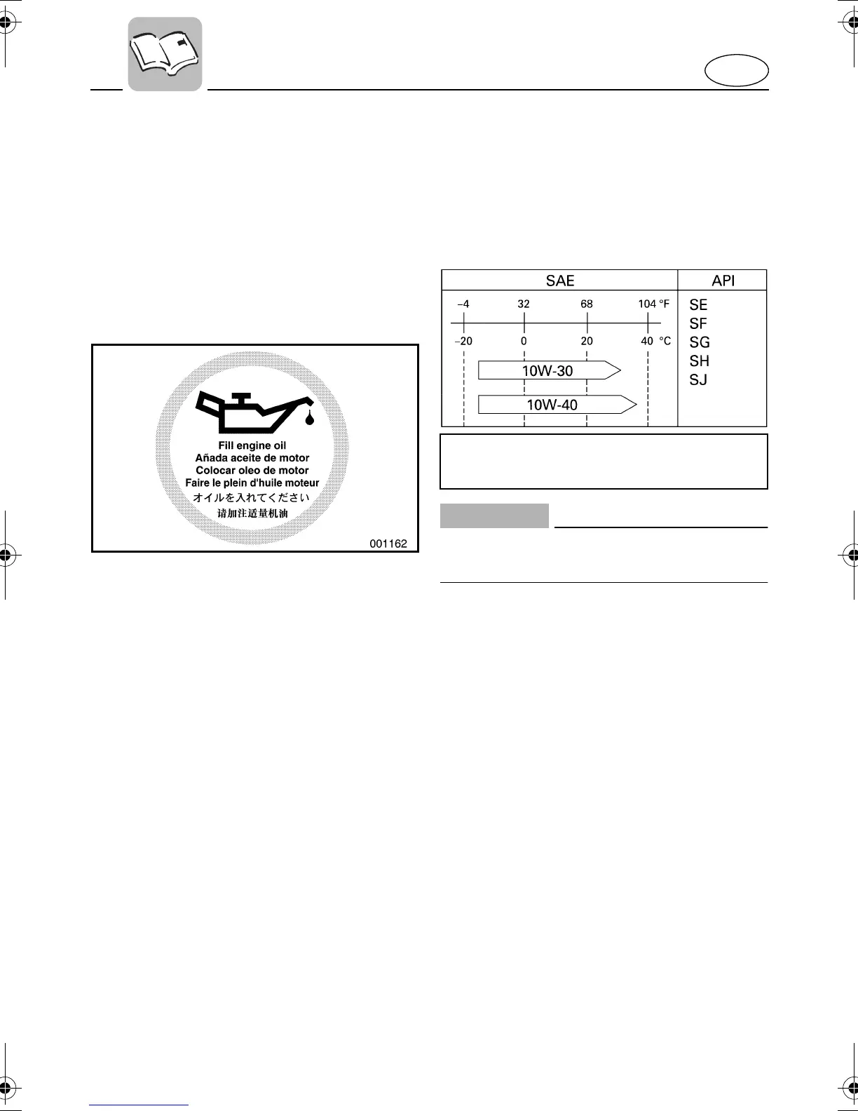 Recommended engine oil: