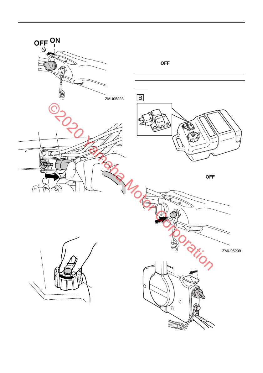 When using the portable fuel tank “B”, stop