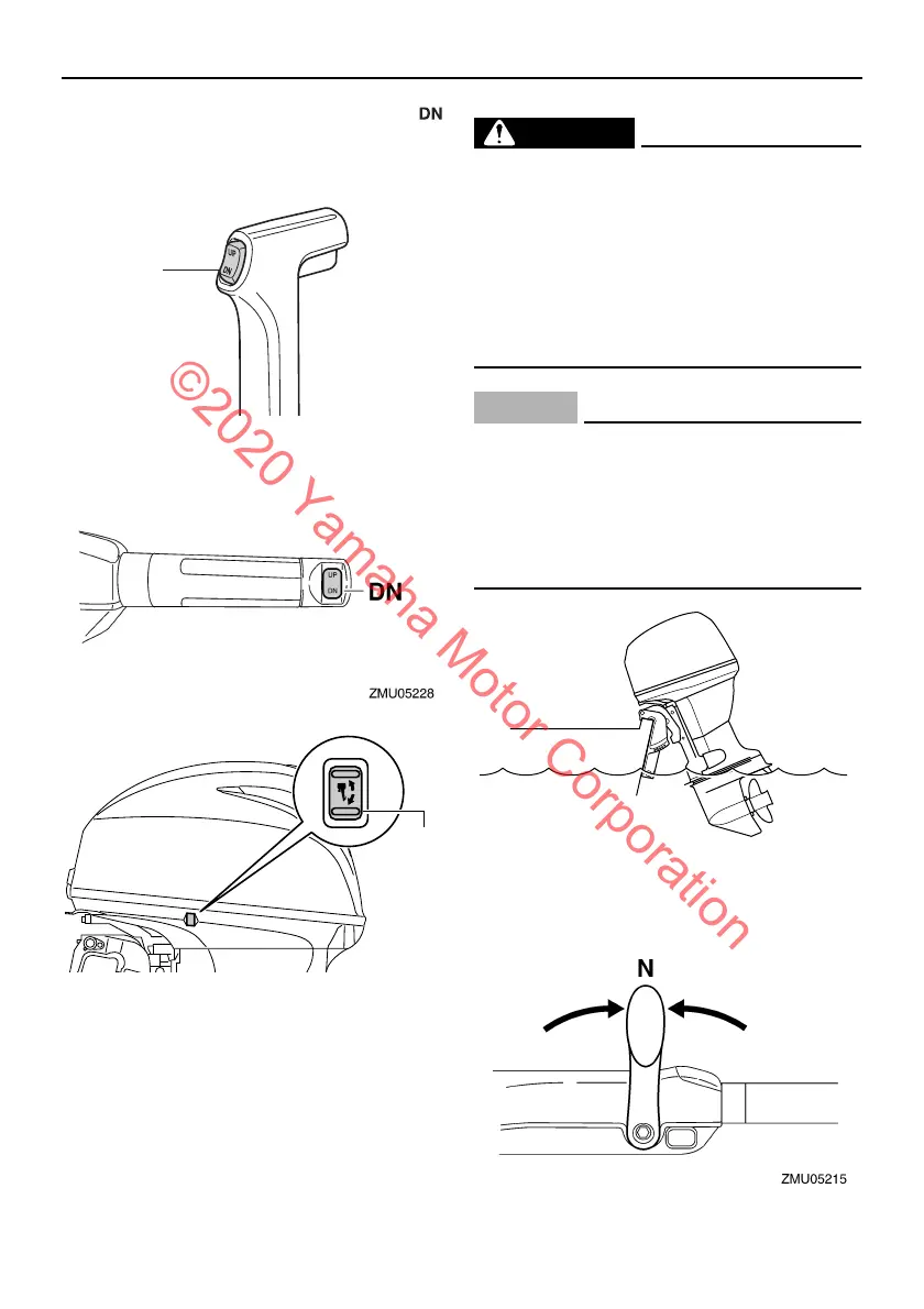 (down) to lower the outboard motor to