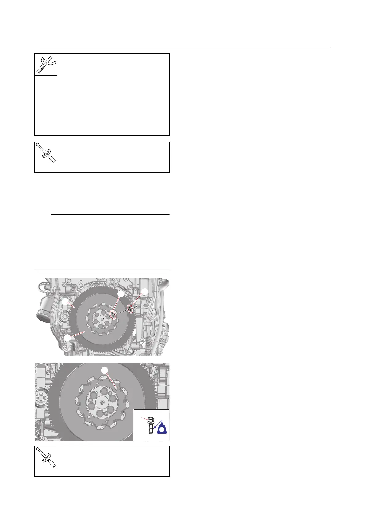 • Tighten the flywheel magneto fan bolts “3”