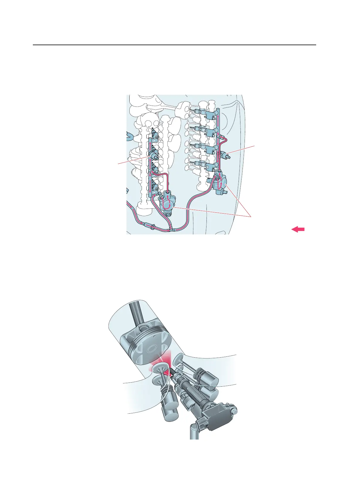 The direct injection pumps “1” further increase the pressure of the fuel from the fuel tank, low-pressure