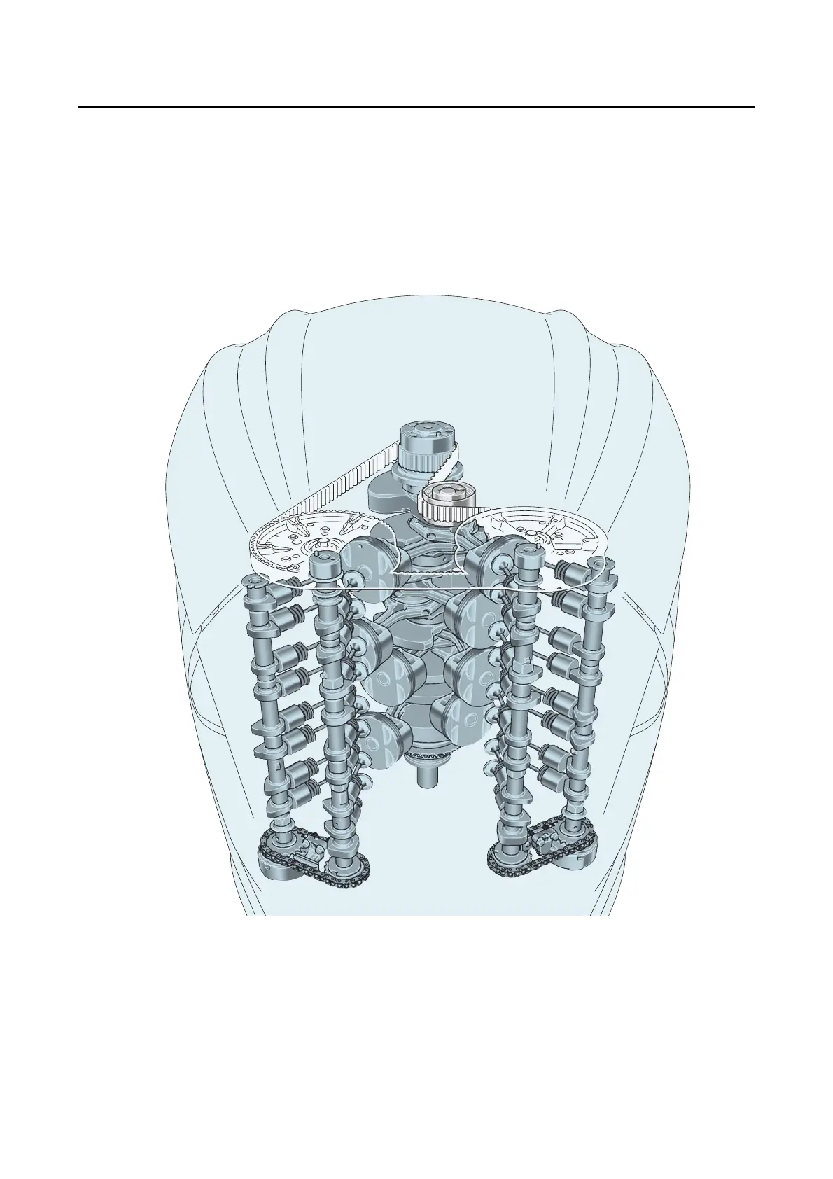 The timing belt is located on the top of the engine and the timing chains and VCT assemblies are lo-