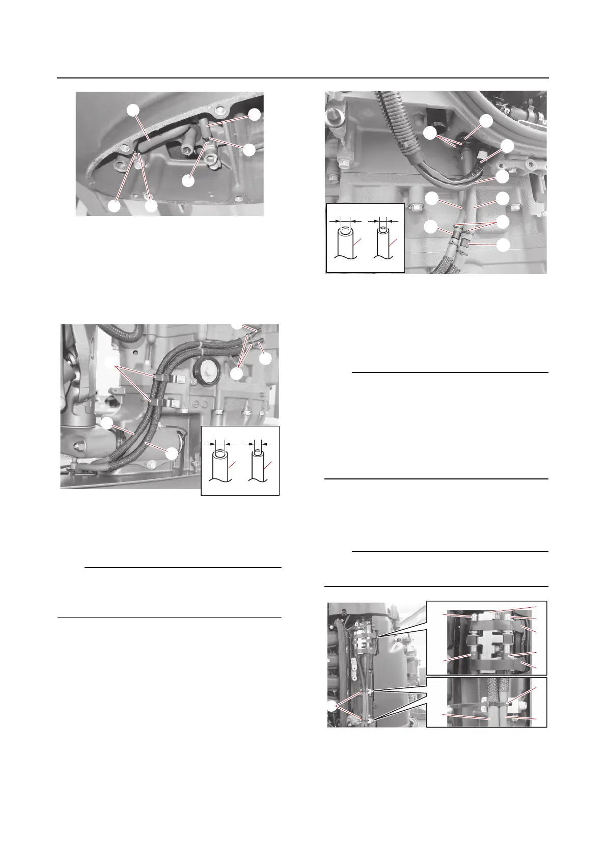 e. Route the hose (gear oil) “1” and hose