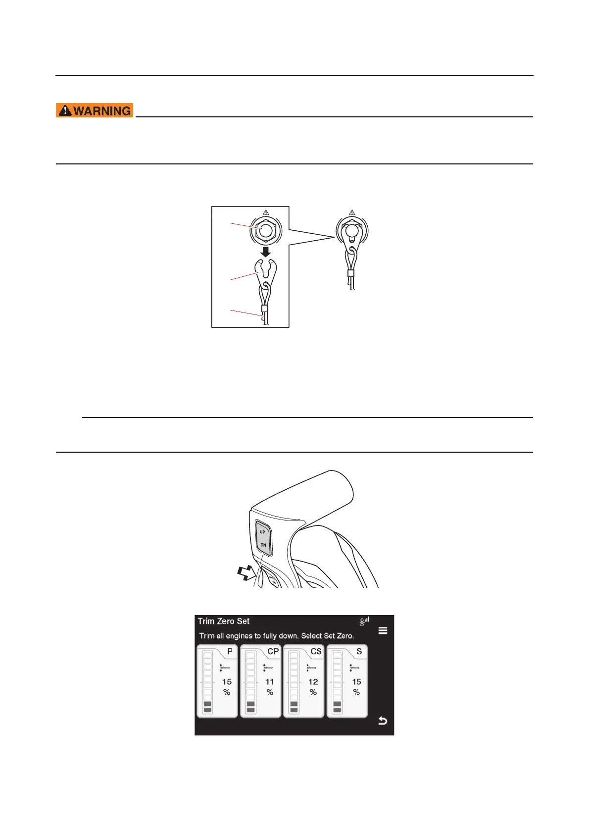 4. Operate the trim zero set while keeping the “DN” (down) side of the PTT switch pushed.