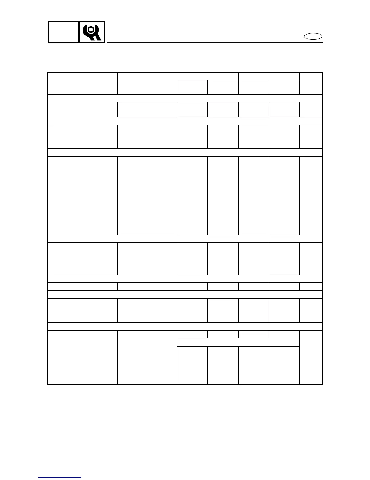 Le tableau ci-après ne constitue qu’un guide général des intervalles d’entretien.