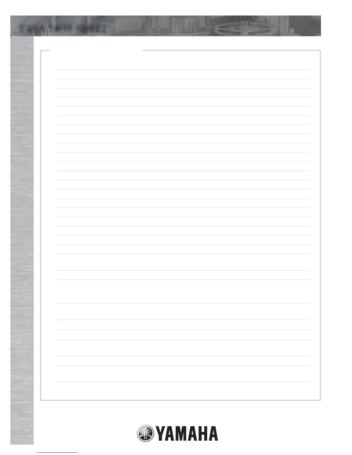 Due to Yamaha’s ongoing commitment to product improvement, we reserve the right to change without notice, equipment, materials, or specifi cations.