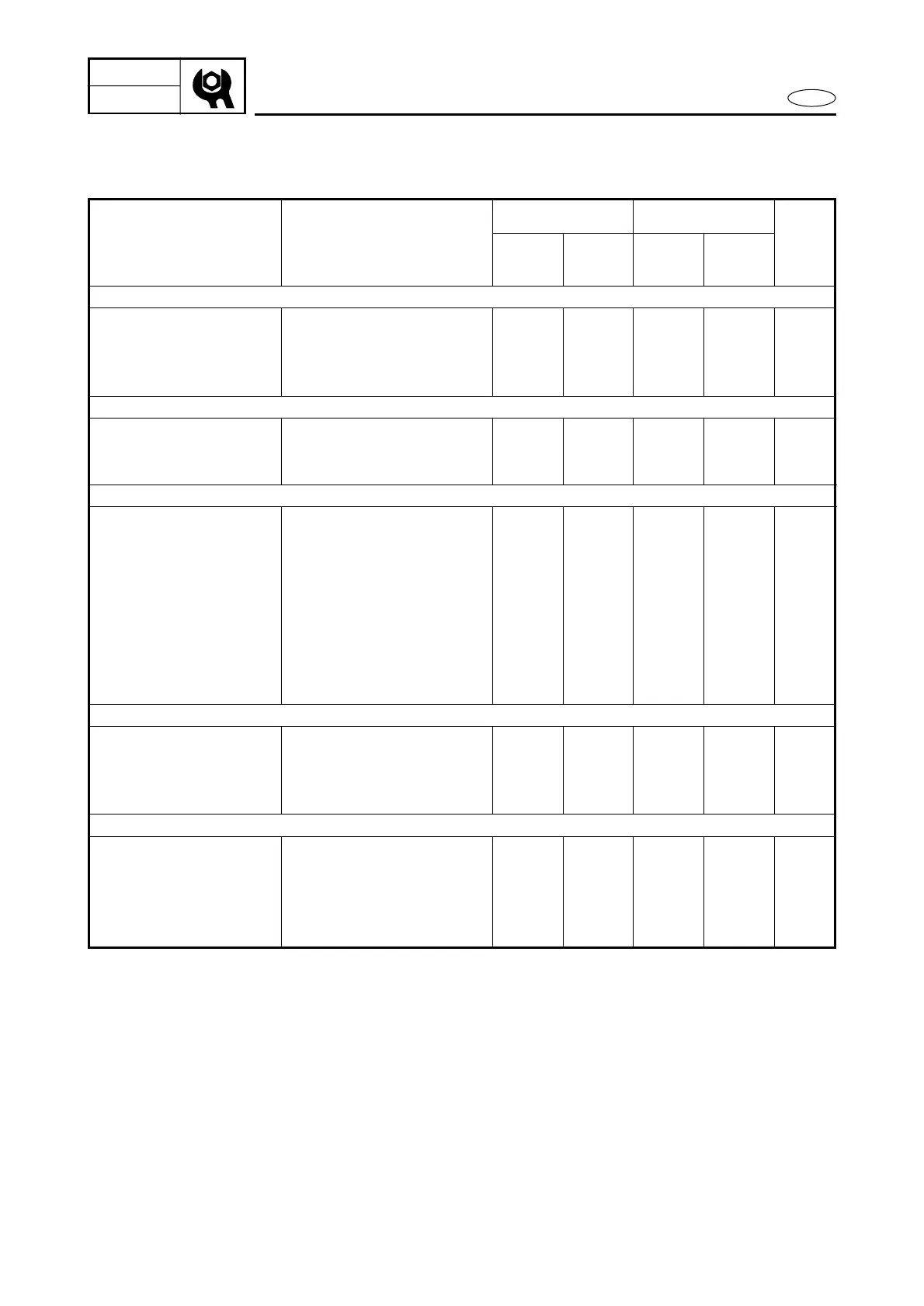 WARTUNGSTABELLE